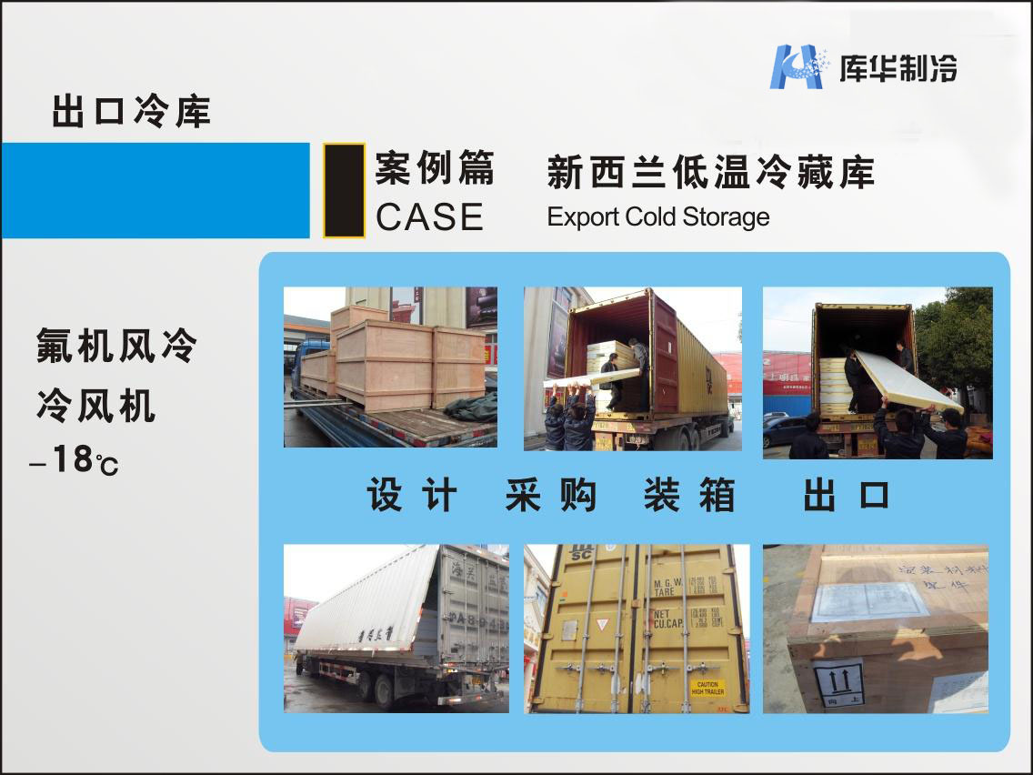 出口冷庫:氟機風冷冷風機-18度新西蘭低溫冷藏庫安裝圖片展示