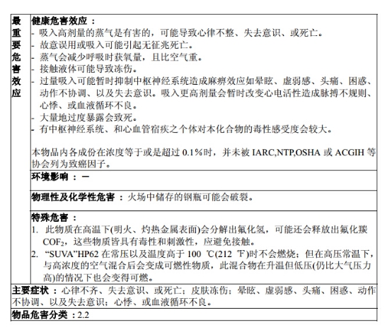 使用R404a制冷劑時材料安全數據表(參考)